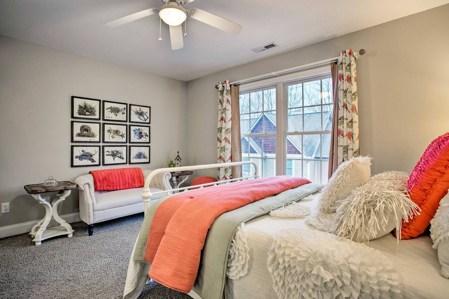 5 Bedrooms | 3,400 Sq Ft | Mountain View | Fire Pit | New Furnishings & Mattresses | Super Clean Be our GUEST at THE NEST! This group-friendly mountain home is great for gathering with friends and family to celebrate birthdays, engagements, and anniversaries, or to attend a nearby wedding, as well as bachelor/ bachelorette weekends, church and business retreats, and high school and college reunions! Or just enjoy a reprieve from the pressures of everyday life in this refreshingly clean house. Private, work-friendly desk spaces if members of your group need to slip away now and then to tend to work or school. Strict maximum of 16 guests. OUTDOOR LIVING Cozy up to the beautiful large-boulder fire pit! Adults enjoy the peace of mind of the large, private fenced-in backyard, safe for kids. Zipline, fire pit, ninja obstacle course, giant tree swing, toddler swing, deck. BEDROOMS & BATHROOMS See pictures of floorplan for layout. Bedroom 1 | The Heron Sleeps 4 (1 King bed & 2 Twin Beds) + Standard Crib Bistro table and upholstered chairs for laptop-friendly workspace. Tranquil pale seafoam blue accents amidst a delicate backdrop of neutral tones. Spacious walk-in closet caringly transformed into an elegant nursery with warm gold canopy crib and plush upholstered rocking chair. Crib cannot be moved to another room. Crib sheets not provided. There are no windows which helps for daytime naps! This is the primary bedroom with a bathroom and walk-in closet (nursery) attached. Bedroom 2 | The Raven Sleeps 6 (2 Queen beds, twin day bed, twin trundle bed) Distressed brown and a black wood secretary desk/vanity AND a 19th C. French iron secretary desk for laptop-friendly workspace or makeup application. Ceiling fan. Vintage black, pristine white, and burlap. Bedroom 3 | The Aviary Sleeps 2 (Queen bed) Antique white with coral and sage accents. There is a door directly from this bedroom into the hall bathroom, which can also be accessed from the hallway on the other side. Bedroom 4 | The Peacock Sleeps 2 (King bed) There is a TV in this room. Come see our Mid-Century-Modern royal peacock vibe! Round mirrored table and upholstered chairs for compact laptop-friendly workspace. Bedroom 5 | The Flamingo Sleeps 2 (Queen bed) This bedroom has a TV and ceiling fan. The bathroom is directly across the hall from this bedroom. Additional sleeping for diverse dynamics: Queen air mattress (stored in game closet in upstairs hallway) Twin rollaway bed (stored in bedroom closet) Large sectional couch (in living room on main level) INDOOR LIVING Free WiFi, flat-screen Smart TV (Netflix, Hulu, Amazon Prime), gas fireplace (available October through March), large sectional couch, full-sized electric piano, game room with air hockey, stand-up arcade machine, and Foosball, board game collection (including Asheville-opoly), 2 dining tables for ample seating, spacious walk-in closet in master bath, central heating & A/C KITCHEN Fully equipped with stainless steel appliances, granite countertops, cooking essentials, refrigerator/ freezer with icemaker, full-sized stove/oven, microwave, toaster, toaster oven, traditional 12-cup coffee maker, Keurig coffee machine, blender, hand mixer, Bosch dishwasher, tableware (plates, glassware, stemware & utensils) BATH & LAUNDRY Bed linens/towels, full-sized washer/dryer (detergent provided, but bring your own if you have brand preferences), iron & ironing board, complimentary toiletries (again, bring your own if you have brand preferences), hair dryer, trash bags, and paper towels. With our tankless water heater, even the last person out of bed gets a hot shower! GETTING HERE This peaceful 4-house neighborhood sits on a private road, less than 9 miles from major sites like The Biltmore Estate and Downtown Asheville. There are no treacherous, windy, twisty, edge-of-cliff mountain roads to get here! It is right off flat main roads. No need to worry; There are no major drop-offs or hard-to-navigate situations! Unlike many Airbnb's in the Asheville area, you won't be gripping the steering wheel with white knuckles or sweating at the brow to get to The Nest! We are not able to accommodate oversized or heavy work vehicles like dump trucks. Work crews, please find other arrangements for your construction vehicles. PARKING Garage (2 vehicles), driveway space (4 vehicles), additional overflow parking lot nearby. We are not able to accommodate oversized or heavy work vehicles. SUPER CLEAN WITH THE GUEST IN MIND With your health and well-being in mind, The Nest is thoroughly cleaned by the same professionals before each check-in! The Nest is about a mile outside the Asheville city limits. Asheville Airbnb laws do not allow people inside city limits to rent out their entire house exclusively as a rental. Legally, it must be their primary residence that they rent when they're out of town, for instance. The Nest is exclusively a rental home, so you won't find personal photos on the walls, used toothpaste in the bathroom drawers, or half-used mustard in the fridge. Due to sanitation and safety, we do not provide grills at our properties. There is a full-size crib (sheet not provided) and guests are welcome to bring pack-n-plays. ADDITIONAL ACCOMMODATIONS We have a strict maximum guest count of 16 at each of our properties. If you need even more space, check out our other Airbnb offerings! The Hive, which also sleeps 16, is located directly next door to The Nest. Additionally, The Corral (by request only) is directly across from The Nest! We are looking forward to hosting your group! We are seasoned Airbnb hosts with excellent reviews!